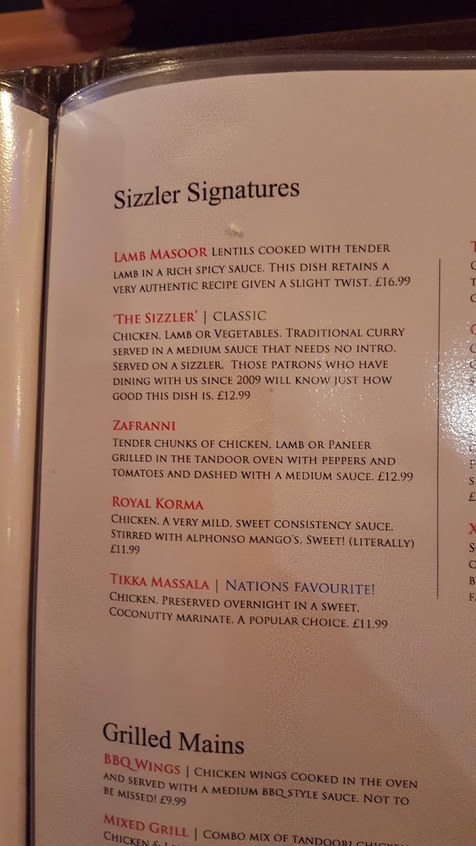 Tarka Dal Paneer Chilli Bombay Aloo Chicken Sizzler